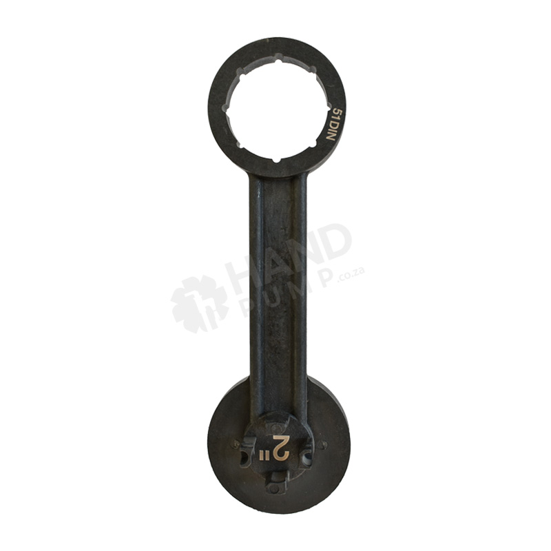 Our Polycan spanner is designed to open and securely close common caps and 2" plugs that are of DIN61, DIN51, 71mm.