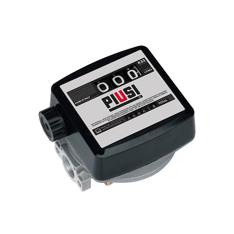 The K33 Diesel flow-meter from Piusi is a durable and reliable 3 digit mechanical (no battery required) meter suited for Diesel. It is the most popular Piusi flow meter for a reason, designed tough for the outdoors through rain, dirt and sun. Maximum flow rate of 120l/min. Measures up to 999.9 litres at an accuracy of 99%. The 1" BSP Inlet and outlet for ease of connecting filters, hosing and pumps. The low resistance to flow means that it can also be used by gravity.